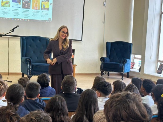 Την Παρασκευή, 27 Φεβρουαριου 2026, με ιδιαίτερη χαρά το σχολείο μας υποδέχθηκε τη συγγραφέα Δέσποινα Ηρακλέους, στο πλαίσιο των δράσεων φιλαναγνωσίας που υλοποιούμε με στόχο την καλλιέργεια της αγάπης για το βιβλίο και την ενίσχυση της κριτικής σκέψης των παιδιών.