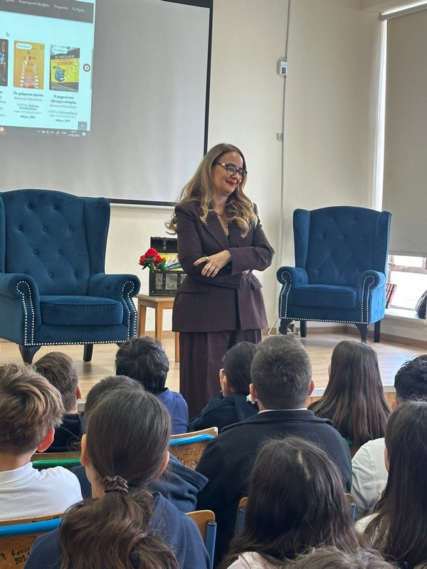 Το σχολείο μας ευχαριστεί θερμά τη συγγραφέα για την ουσιαστική και εμπνευσμένη παρουσία της.