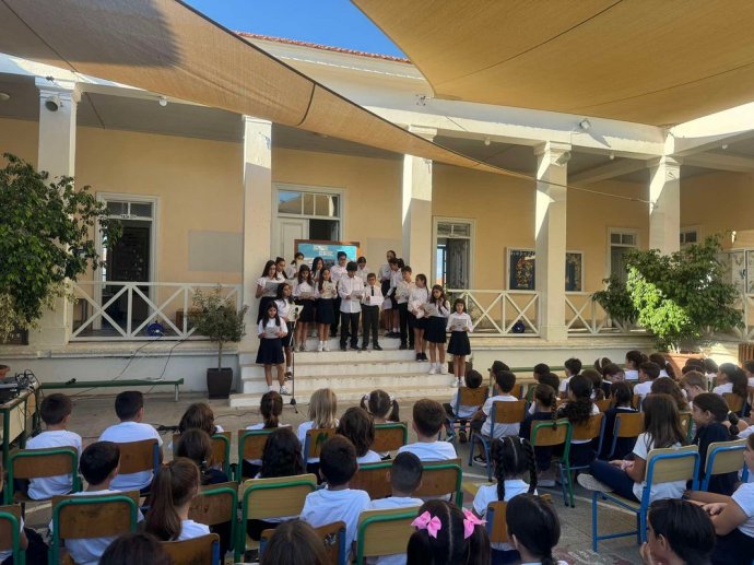 ΣΤΟ ΠΛΑΙΣΙΟ ΤΟΥ ΕΟΡΤΑΣΜΟΥ, ΤΑ ΠΑΙΔΙΑ ΤΗΣ ΣΤ΄ ΤΑΞΗΣ ΠΑΡΟΥΣΙΑΣΑΝ ΕΝΑ ΚΑΛΛΙΤΕΧΝΙΚΟ ΠΡΟΓΡΑΜΜΑ,ΤΟ ΟΠΟΙΟ ΠΕΡΙΛΑΜΒΑΝΕ: ΑΦΗΓΗΣΕΙΣ, ΑΠΑΓΓΕΛΙΕΣ ΚΑΙ ΤΡΑΓΟΥΔΙ.