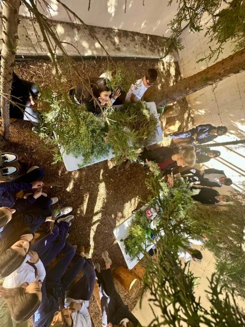Με ενθουσιασμό, τα παιδιά έδεσαν τα βότανα σε όμορφα ματσάκια, καλλιεργώντας τη συνεργασία και τον σεβασμό προς το περιβάλλον.