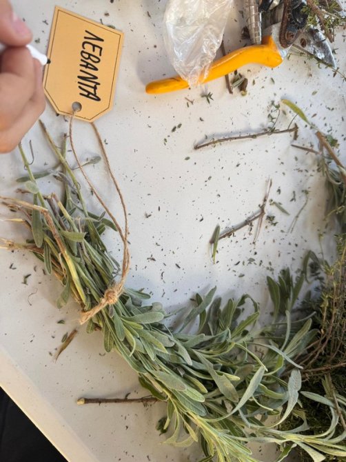 Με ενθουσιασμό και δημιουργικότητα, τα παιδιά έδεσαν τα αρωματικά φυτά σε όμορφα ματσάκια, μαθαίνοντας τον σωστό τρόπο συλλογής και αποξήρανσής τους.