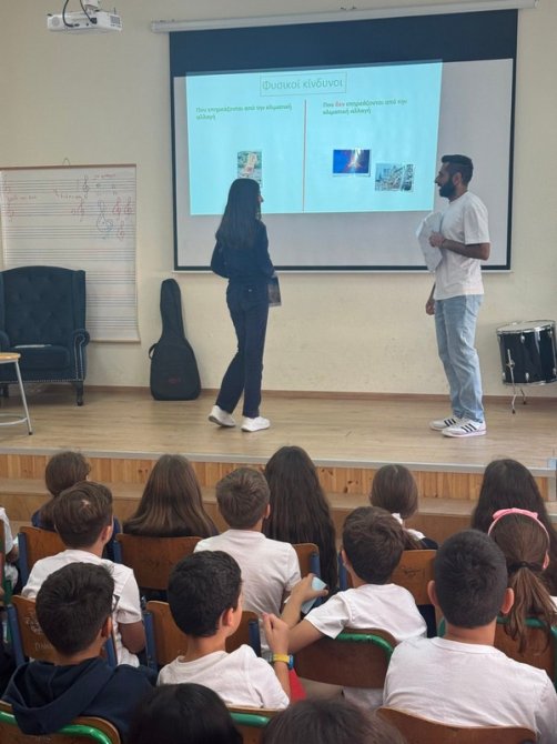 Οι λειτουργοί του Κ.Π.Ε. πραγματοποίησαν ενημερωτική παρουσίαση στα παιδιά, με στόχο την ευαισθητοποίηση και την ενημέρωση γύρω από το φαινόμενο των φυσικών καταστροφών και τη σχέση τους με την κλιματική αλλαγή.