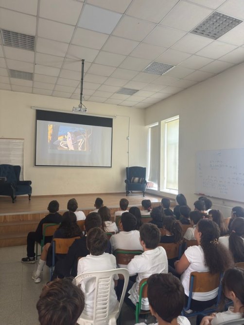 Μετά την προβολή, τα παιδιά είχαν την ευκαιρία να συζητήσουν με τον κ. Γιάννη Σακέλλη, γονέα του σχολείου μας και μέλος της δημιουργικής ομάδας της ταινίας, ο οποίος μοιράστηκε μαζί τους στοιχεία της παραγωγής και τη σημασία της διάσωσης και προβολής τέτοιων ιστοριών ηρωισμού.