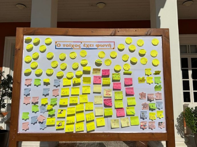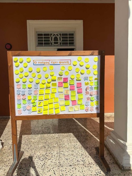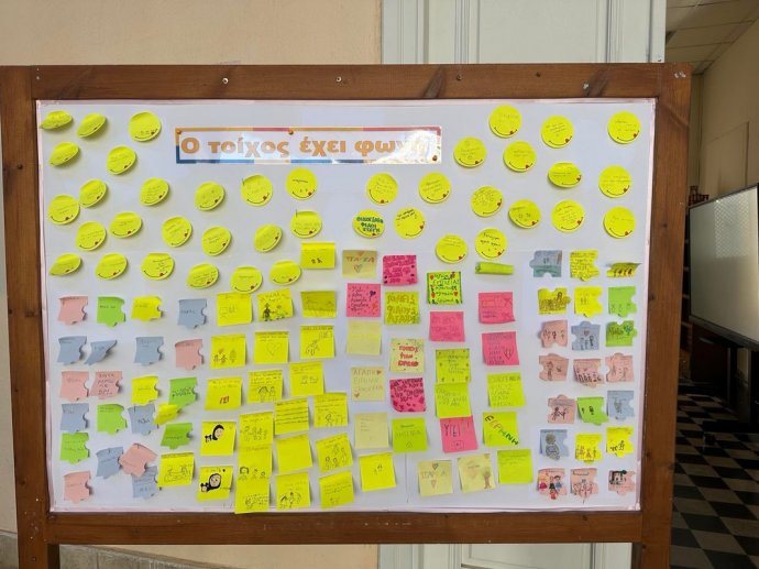 Τα post-it αναρτήθηκαν στον ειδικά επιλεγμένο χώρο του σχολείου, τον «Τοίχο που έχει Φωνή», δημιουργώντας έναν ζωντανό τοίχο με απόψεις και συναισθήματα των παιδιών. Η σχολική μονάδα φωτογράφισε τον τοίχο και τον μοιράστηκε στην ιστοσελίδα με το hashtag #20ΓιαΣένα.