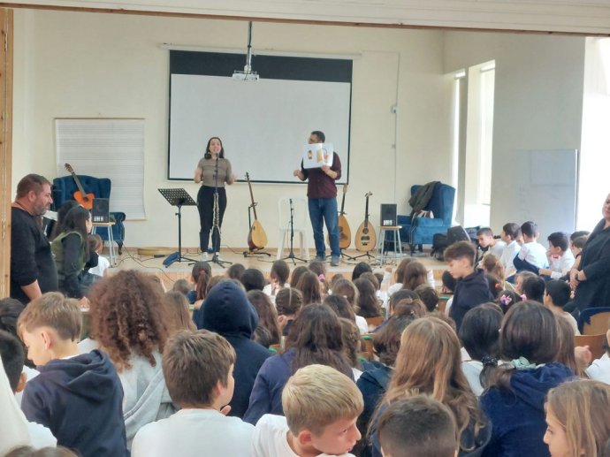 Την Παρασκευή, 05 Δεκεμβρίου 2025, το σχολείο μας είχε την ιδιαίτερη χαρά να φιλοξενήσει τους μουσικούς Χαράλαμπο Παντελή και Κωνσταντίνα Ξενοφώντος, σε μια εκδήλωση αφιερωμένη στα παραδοσιακά Κάλαντα της Κύπρου και της Ελλάδας.