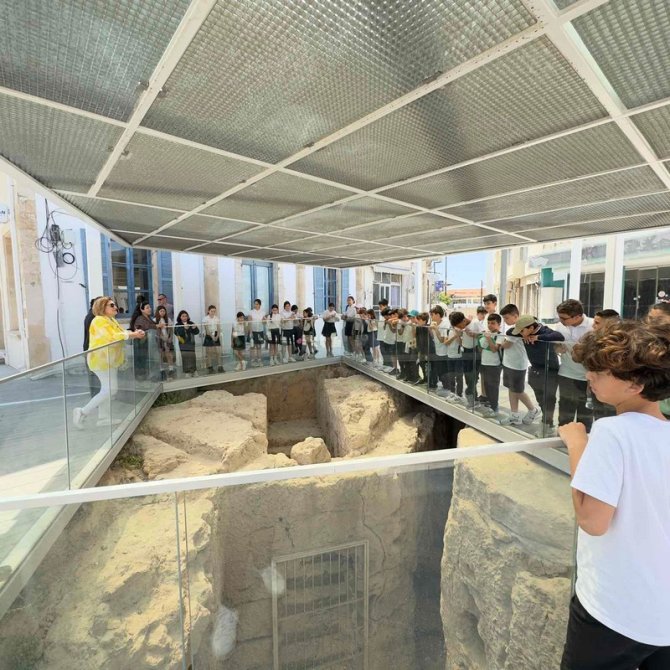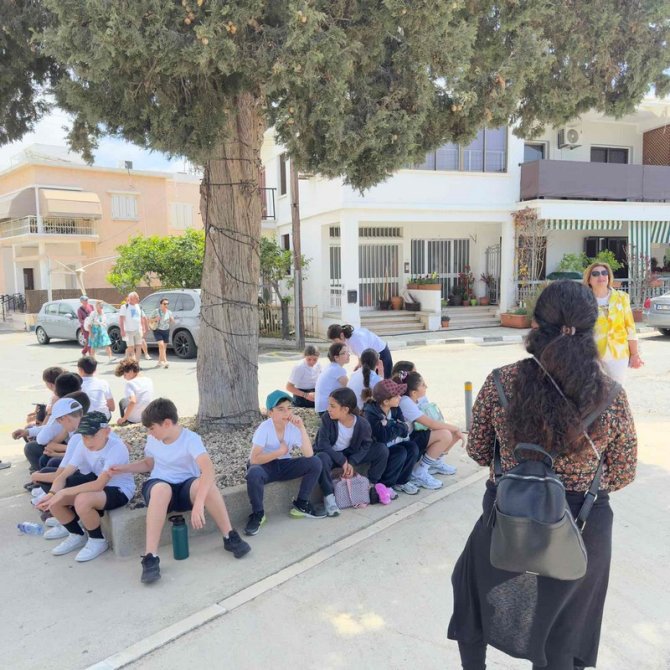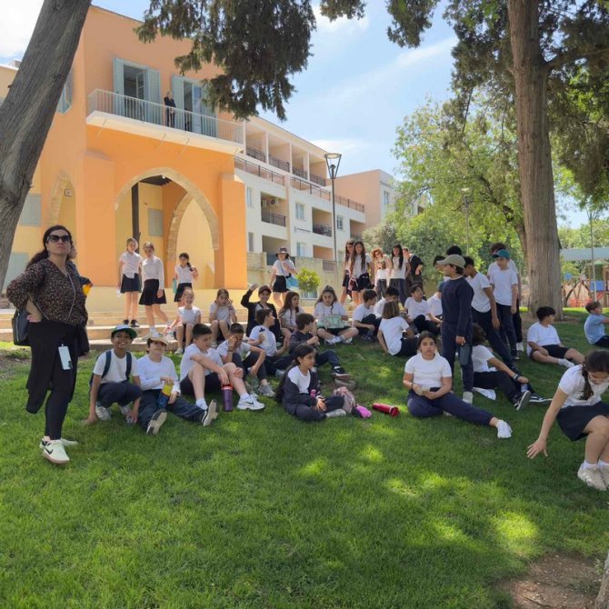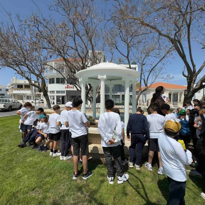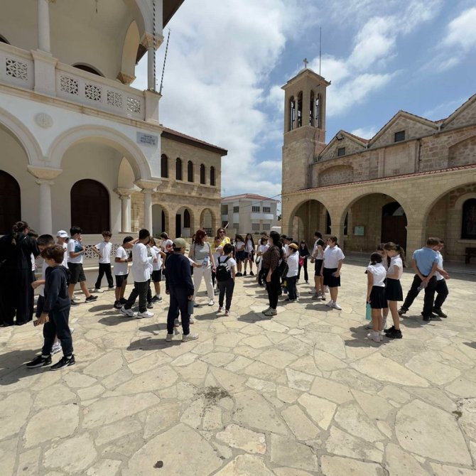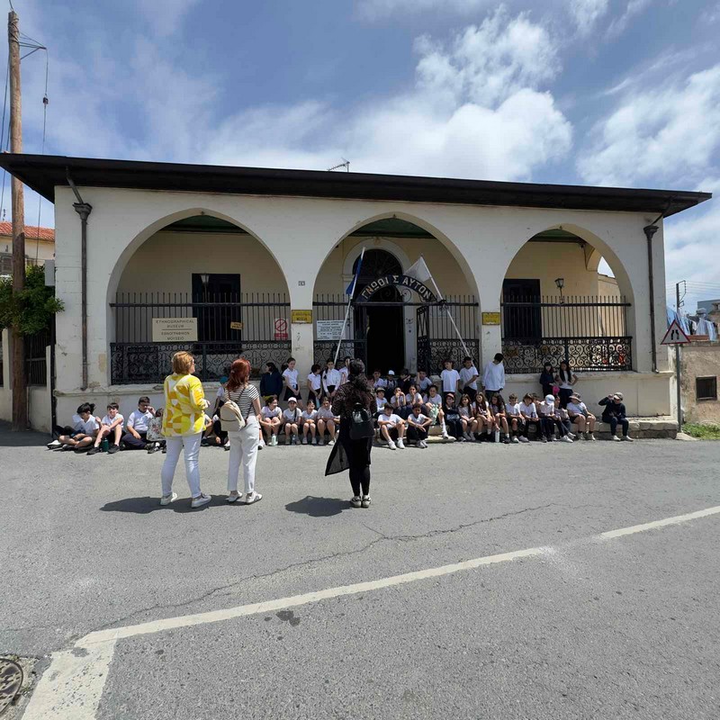 Στη συνέχεια, οι μαθήτριες και οι μαθητές των Δ’ και Ε’ τάξεων, μαζί με αδειούχο ξεναγό, συνόδευσαν τις φιλοξενούμενές μας σε μια ενδιαφέρουσα περιδιάβαση στους ιστορικούς χώρους γύρω από το σχολείο μας, αναδεικνύοντας σημεία τοπικού ενδιαφέροντος και τη σύνδεση του σχολείου με την κοινότητα.