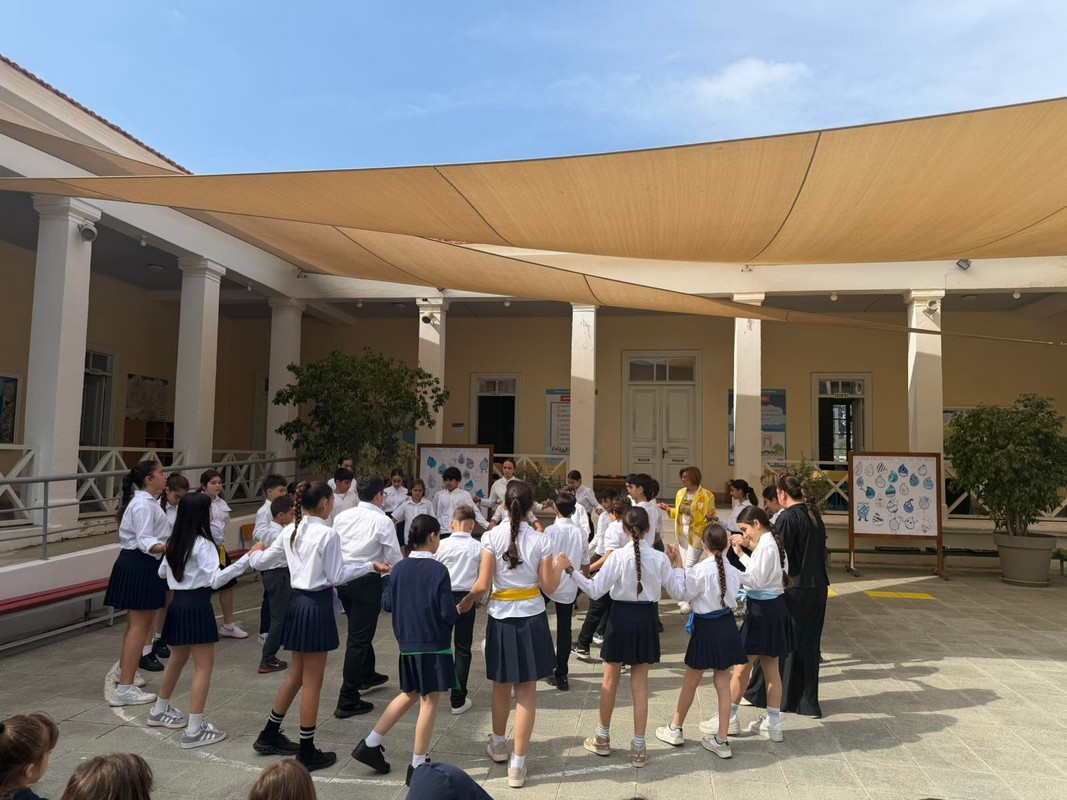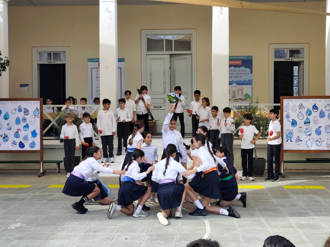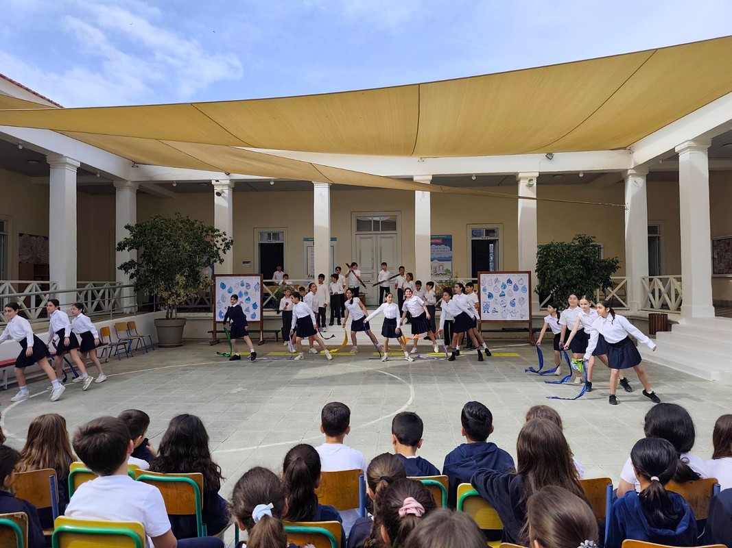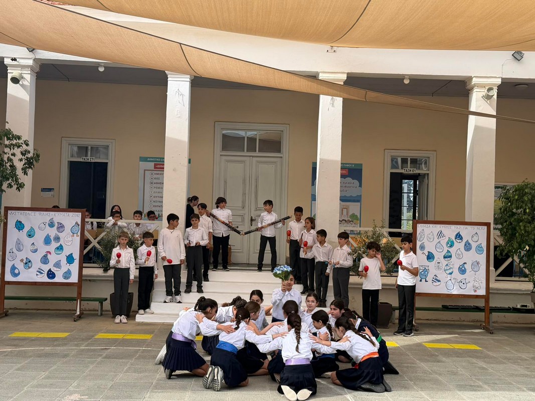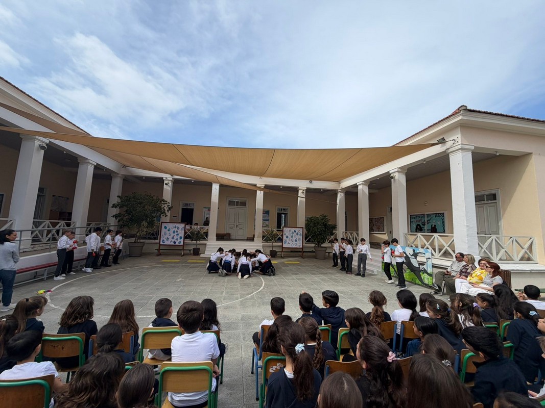Η υποδοχή τους έγινε με ένα όμορφο καλλιτεχνικό πρόγραμμα από τα παιδιά των Ε’ και Στ’ τάξεων, τα οποία παρουσίασαν με ενθουσιασμό τραγούδια και δρώμενα.