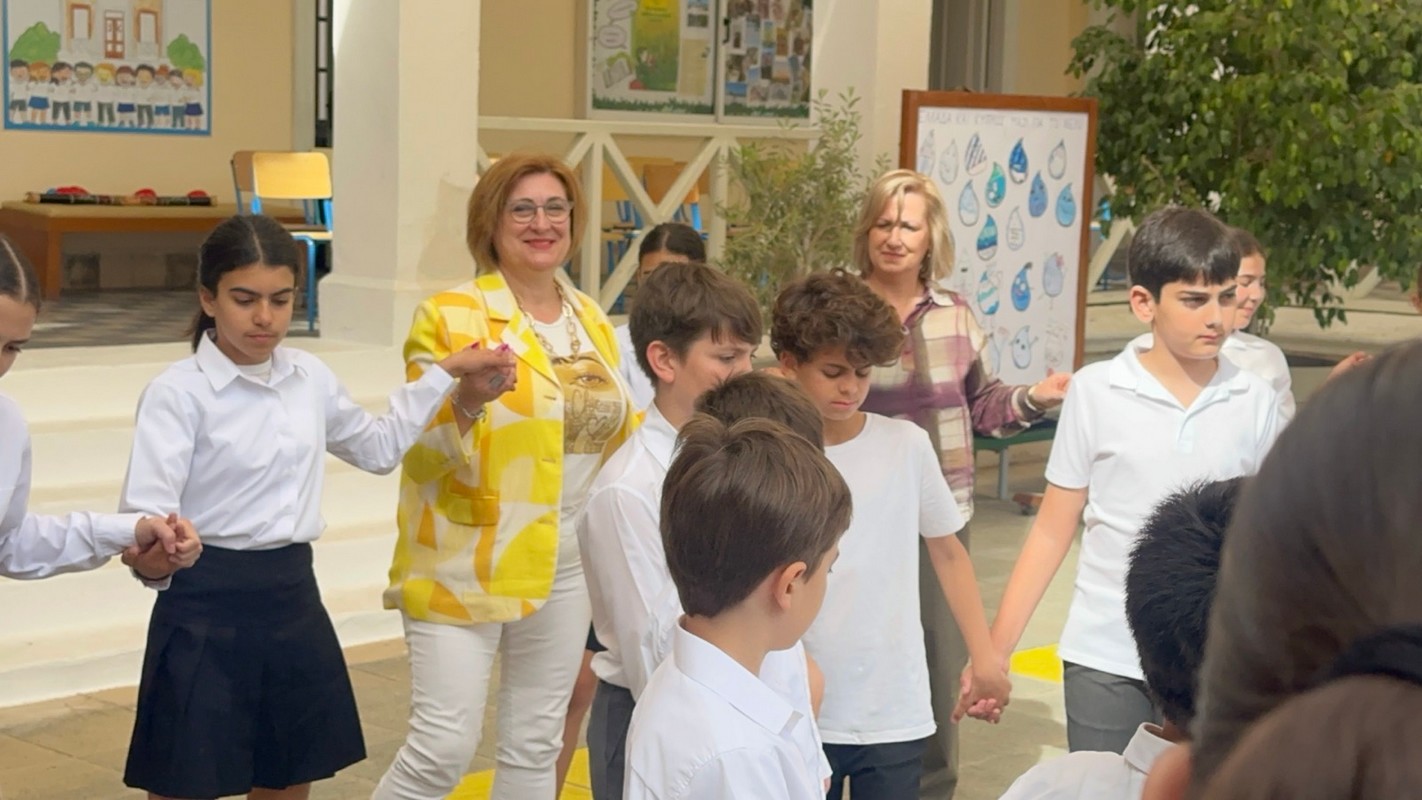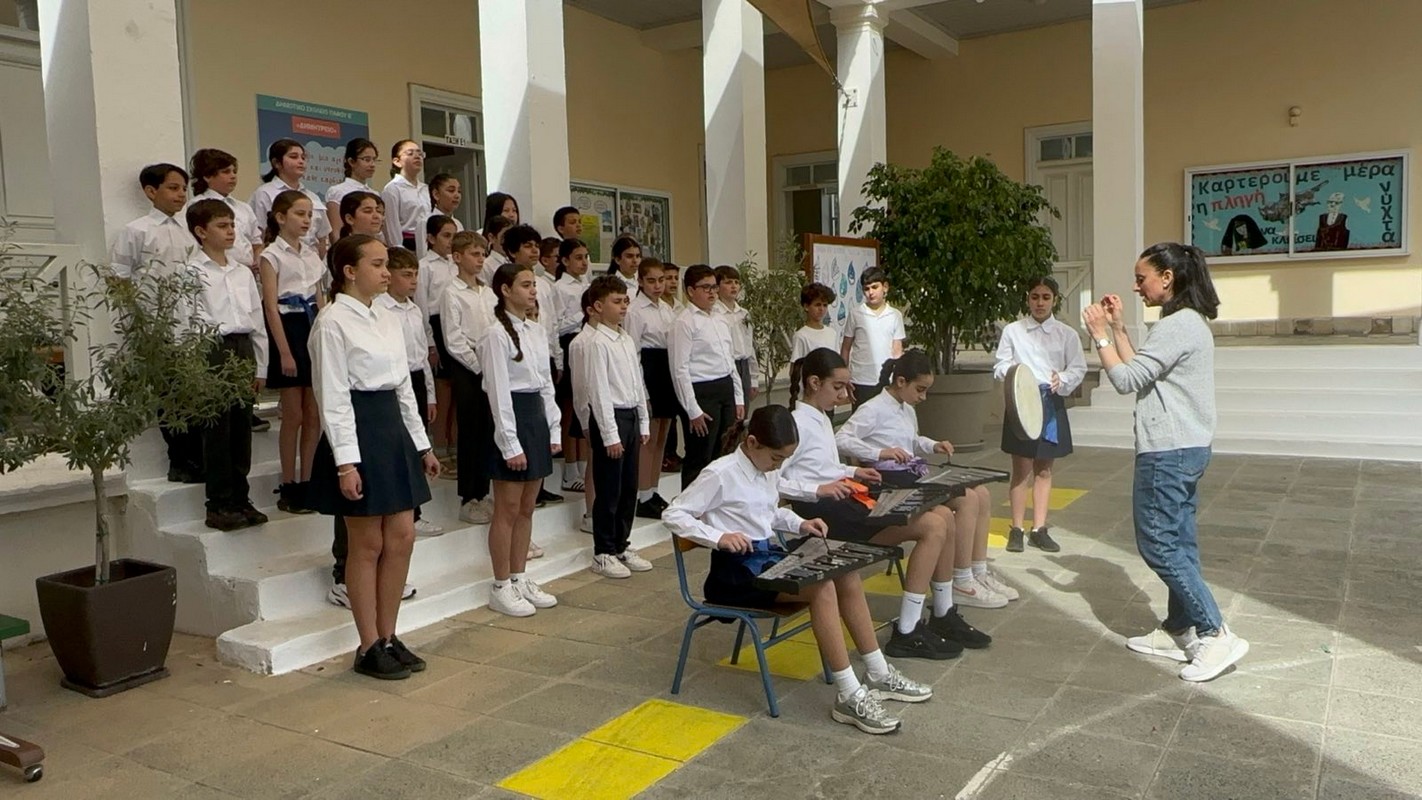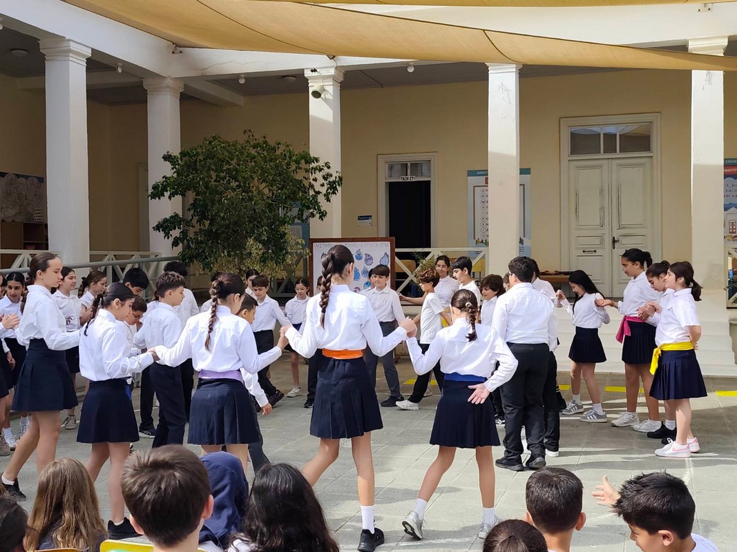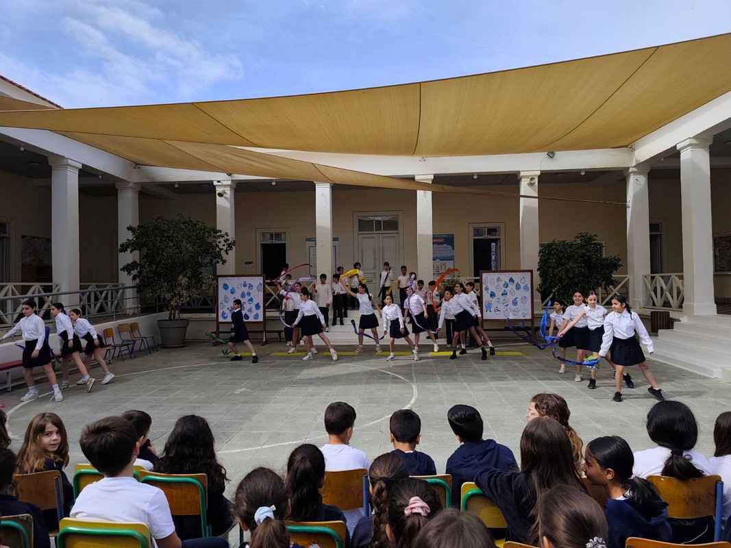 Η υποδοχή τους έγινε με ένα όμορφο καλλιτεχνικό πρόγραμμα από τα παιδιά των Ε’ και Στ’ τάξεων, τα οποία παρουσίασαν με ενθουσιασμό τραγούδια και δρώμενα.