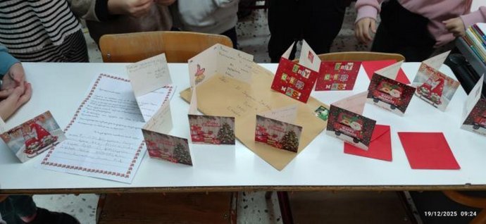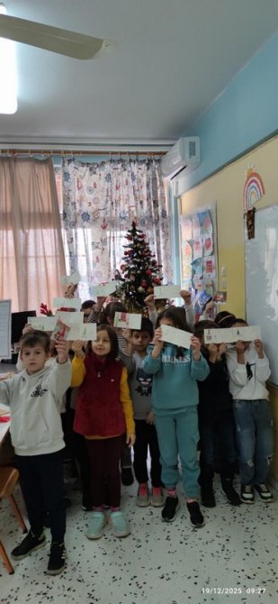 Τα παιδιά της Α΄ τάξης του σχολείου μας ετοίμασαν και έστειλαν χριστουγεννιάτικες κάρτες σε παιδιά Δημοτικού Σχολείου στον Βόλο της Ελλάδας, στέλνοντας μηνύματα αγάπης, φιλίας και γιορτινών ευχών.